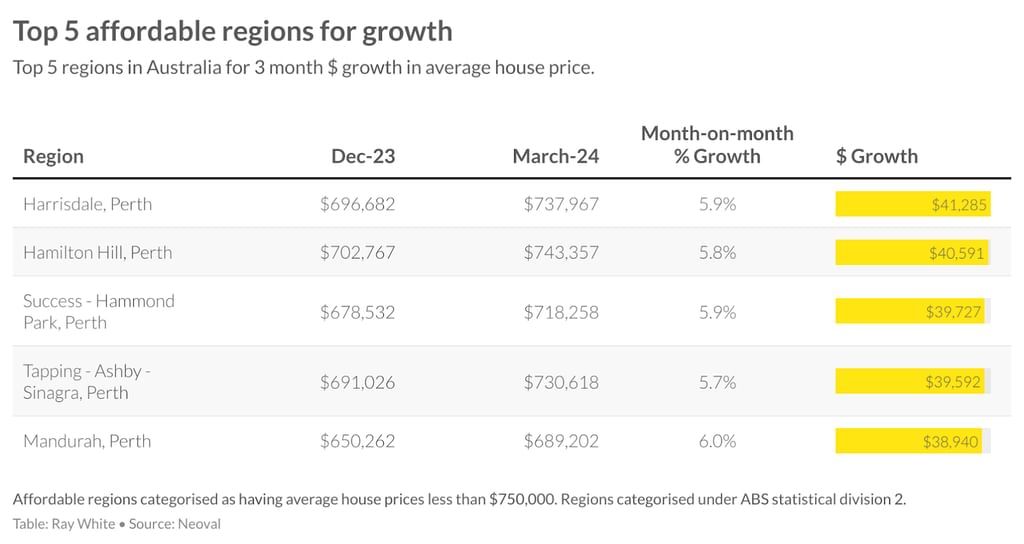 The top five regions in Australia for three month growth in average house prices are in Perth which has been a particularly strong market over the past two years. Will this growth continue to be strong?